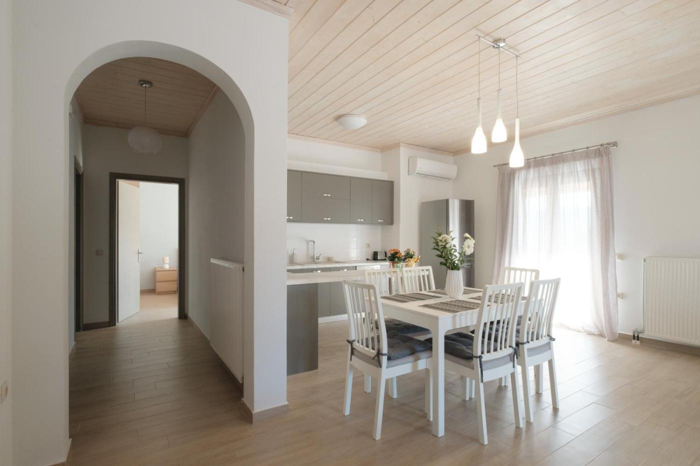 Three-Bedroom Apartment. Featuring a private entrance, this air-conditioned apartment consists of a kitchen, 3 bedrooms and 1 bathroom with a shower and a hairdryer. Guests can make meals in the kitchen that is equipped with a stovetop, a refrigerator, an oven and an electric kettle. Boasting a terrace with garden views, this apartment also provides a washing machine and a flat-screen TV. The unit offers 5 beds.