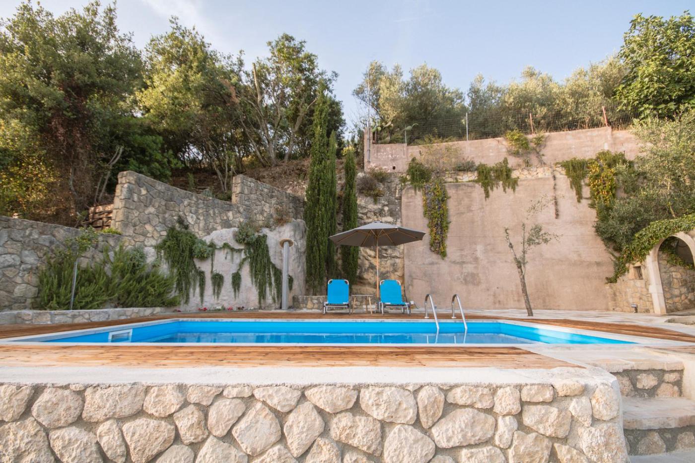 Located in Bastoúnion, Corfu Tramezzo designers House provides accommodation with private pool, free WiFi and free private parking for guests who drive. With garden views, this accommodation offers a patio. Pontikonisi is 4.8 km away and Panagia Vlahernon Church is 6.2 km from the holiday home.