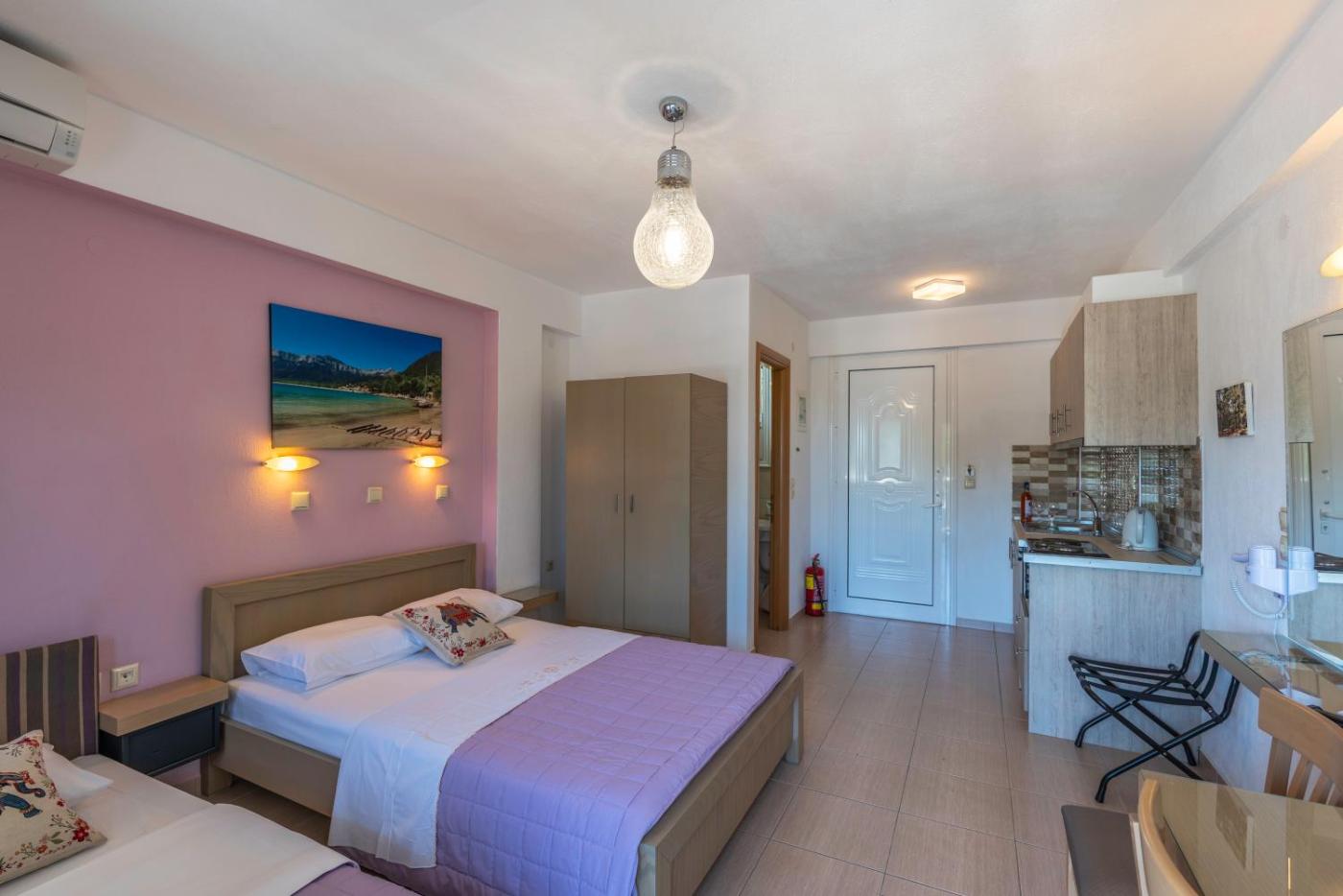 Set 200 metres from Golden Beach and 12 km from Port of Thassos, Alegria Studios features free WiFi and units fitted with a kitchenette, balcony and seating area. Located on the beachfront, this property has a garden. Guests can make use of the childrens playground or the barbecue, or enjoy views of the mountain and garden.