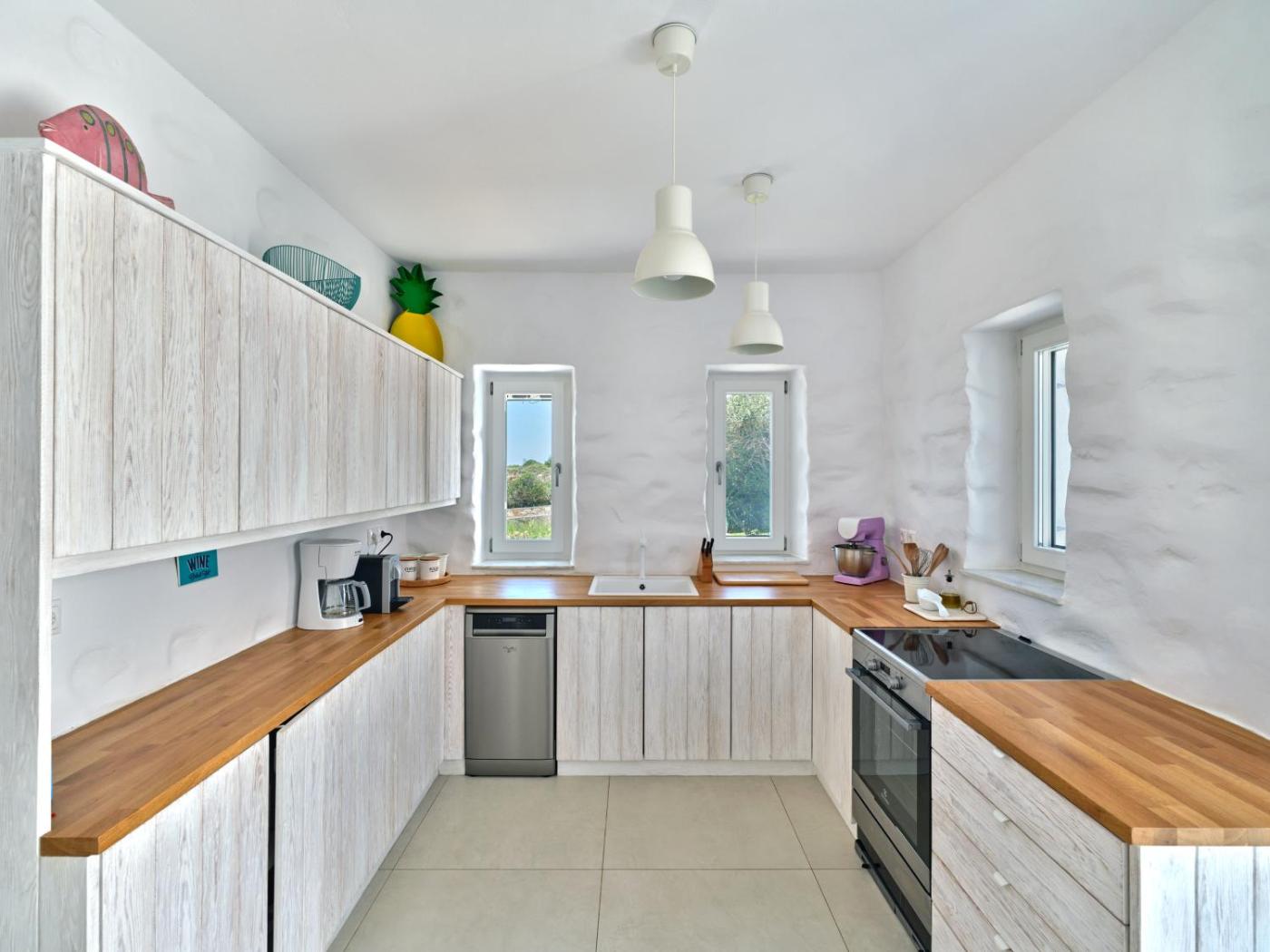 Villa. This air-conditioned villa comes with 1 living room, 4 separate bedrooms, which are distributed over two levels, and 4 bathrooms with a bath or a shower. Guests can make meals in the kitchen that features a stovetop, a refrigerator, a dishwasher and kitchenware. Boasting a terrace with sea views, this villa also features a washing machine and a flat-screen TV. The unit has 6 beds.