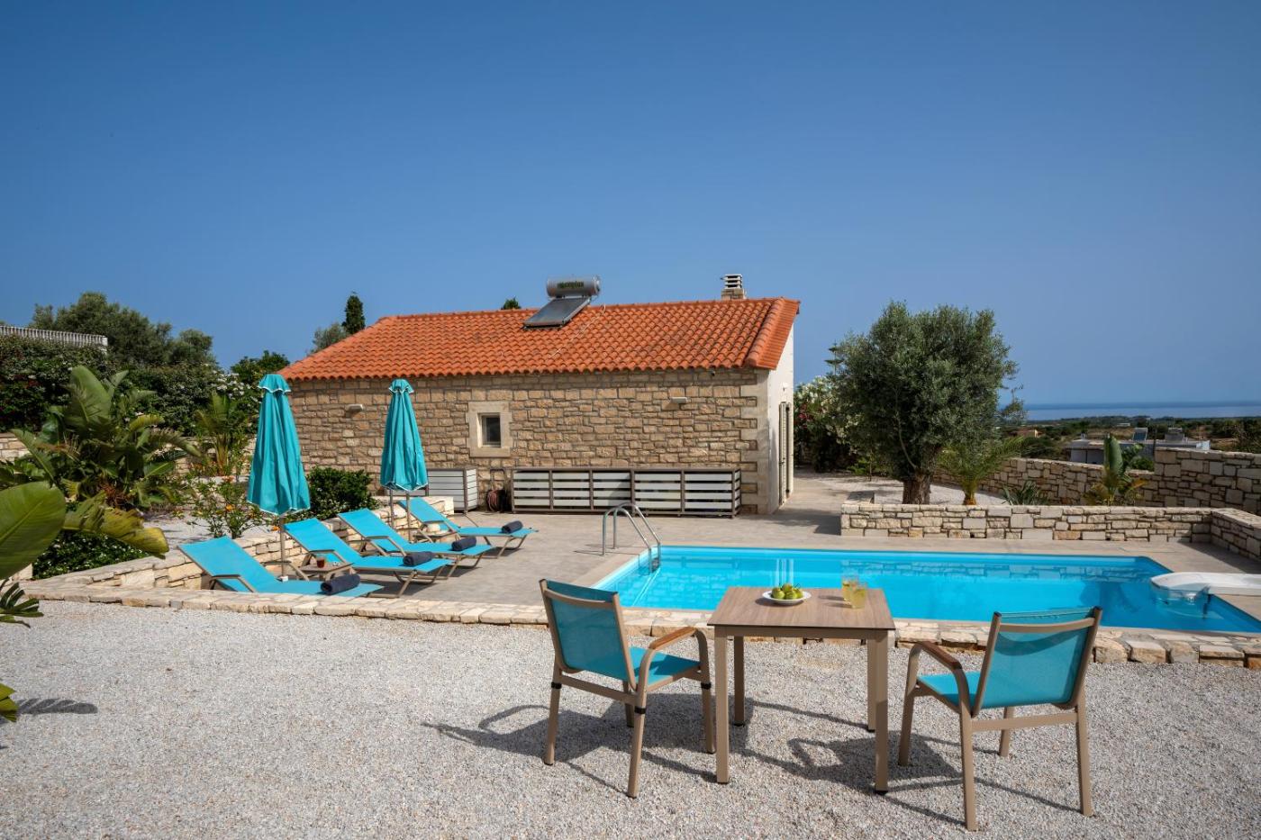 Villa with Private Pool. The private pool and fireplace are the special features of this villa. Featuring a private entrance, this air-conditioned villa is comprised of 1 living room, 2 separate bedrooms and 1 bathroom with a shower and a hairdryer. Guests will find a stovetop, a refrigerator, a dishwasher and kitchenware in the well-fitted kitchen. The villa also has a barbecue. Boasting a terrace with sea views, this villa also offers a washing machine and a flat-screen TV with streaming services. The unit offers 4 beds.