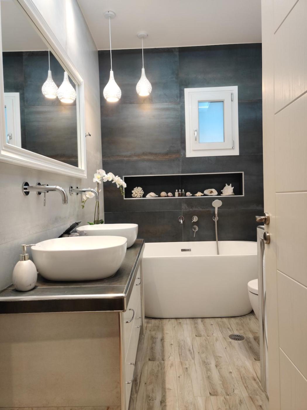 Two-Bedroom Apartment. The private pool and fireplace are the special features of this apartment. Boasting a private entrance, this air-conditioned apartment comes with 1 living room, 2 separate bedrooms and 2 bathrooms with a bath and a shower. Guests can make meals in the kitchen that features a stovetop, a refrigerator, a dishwasher and an oven. The spacious apartment features a washing machine, soundproof walls, a dining area, a flat-screen TV with streaming services, as well as sea views. The unit has 3 beds.