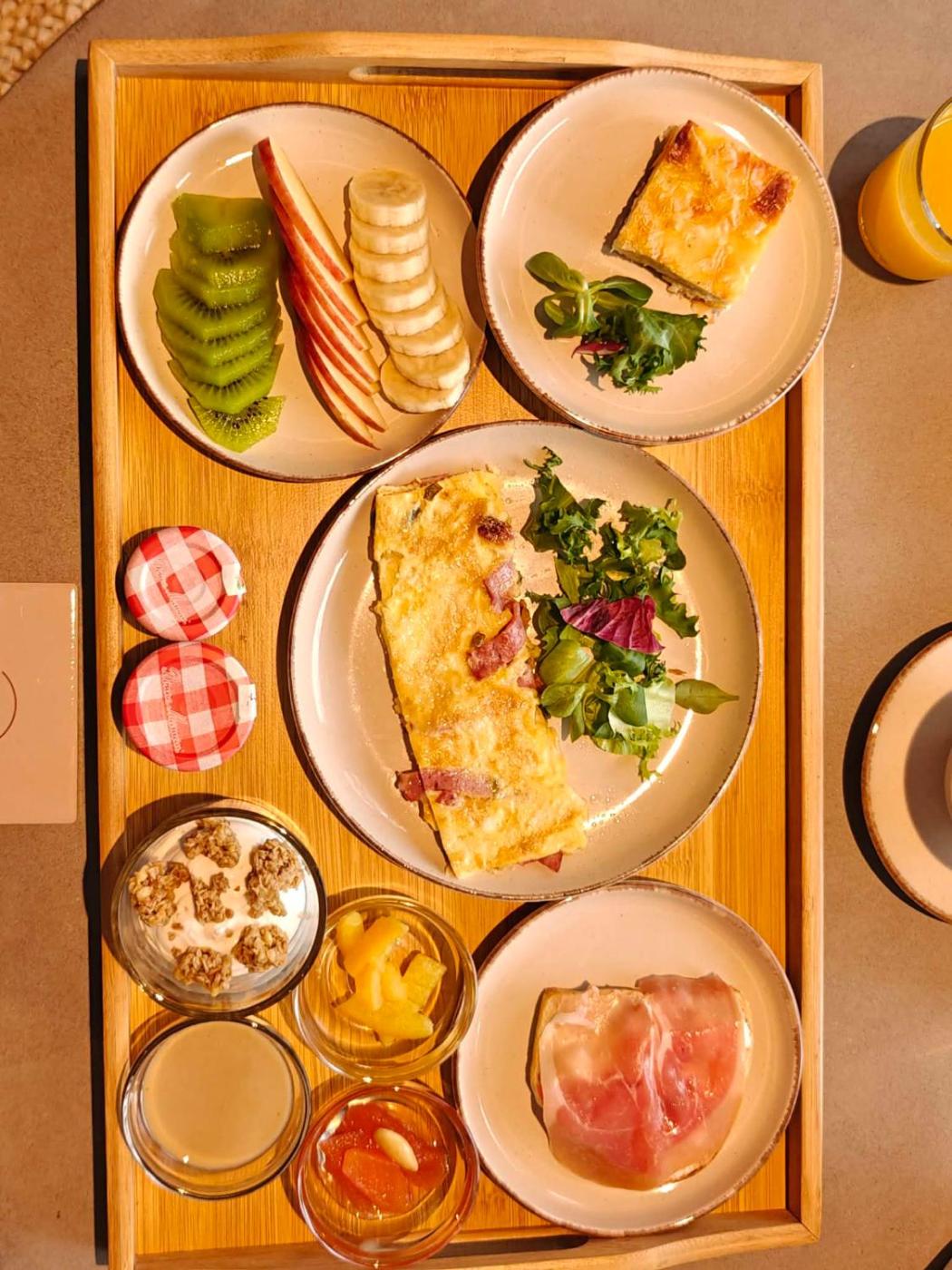 Vegetarian and vegan breakfast options with fresh pastries, fruits and juice are available.