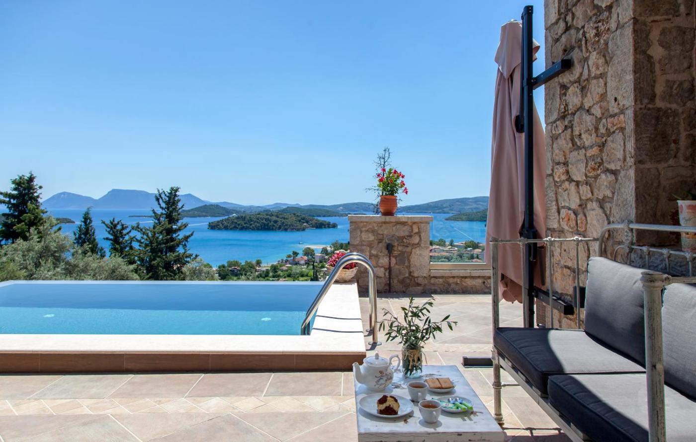 Three-Bedroom Villa. This villas special features are the pool with a view and the fireplace. Featuring a private entrance, this air-conditioned villa comprises 1 living room, 3 separate bedrooms and 4 bathrooms with a bath and a shower. Guests will find a stovetop, a refrigerator, a dishwasher and kitchenware in the kitchen. The villa also provides guests with a barbecue. The spacious villa provides a washing machine, a tea and coffee maker, a seating area as well as a terrace with sea views. The unit offers 5 beds.